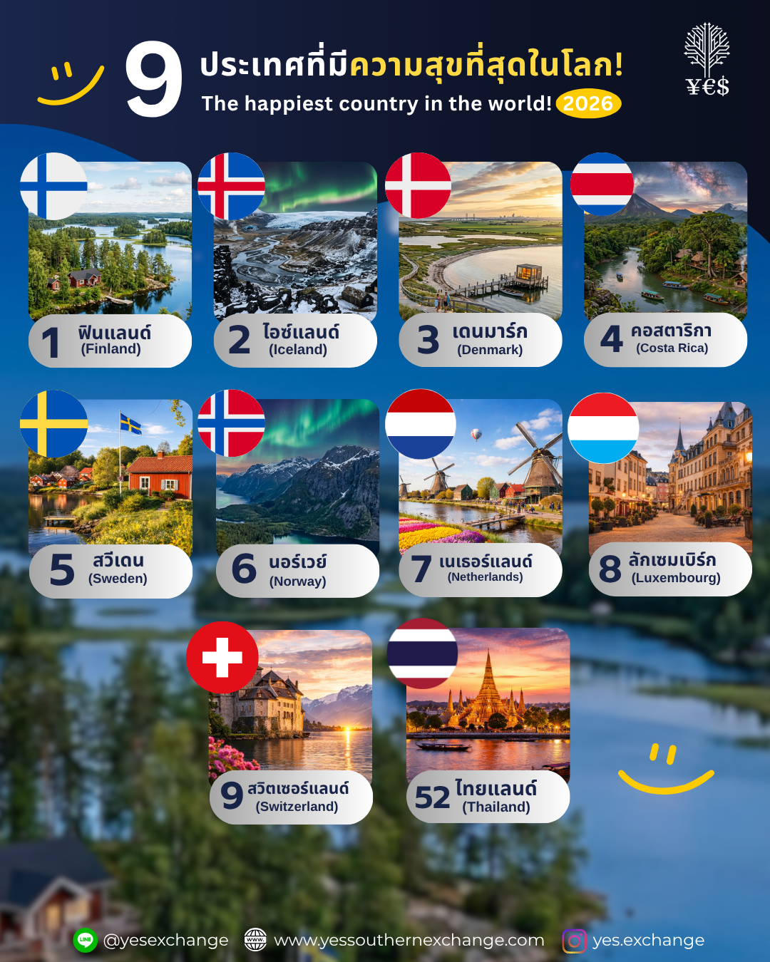 #YESExchange #YESSouthernExchange #YESExchangeService #WorldHappinessReport2026 #āļˆāļąāļ”āļ­āļąāļ™āļ”āļąāļšāļ›āļĢāļ°āđ€āļ—āļĻāļ—āļĩāđˆāļĄāļĩāļ„āļ§āļēāļĄāļŠāļļāļ‚āļ—āļĩāđˆāļŠāļļāļ”āđƒāļ™āđ‚āļĨāļ #āļ›āļĢāļ°āđ€āļ—āļĻāļ—āļĩāđˆāļĄāļĩāļ„āļ§āļēāļĄāļŠāļļāļ‚āļ—āļĩāđˆāļŠāļļāļ”āđƒāļ™āđ‚āļĨāļ #āļŸāļīāļ™āđāļĨāļ™āļ”āđŒ #āļ„āļ­āļŠāļ•āļēāļĢāļīāļāļē #Travel2026 #CurrencyexchangePhuket #āđ€āļĢāļ—āđ€āļ‡āļīāļ™āļ§āļąāļ™āļ™āļĩāđ‰ #āļ„āļ§āļēāļĄāļŠāļļāļ‚āļŠāļĢāđ‰āļēāļ‡āđ„āļ”āđ‰