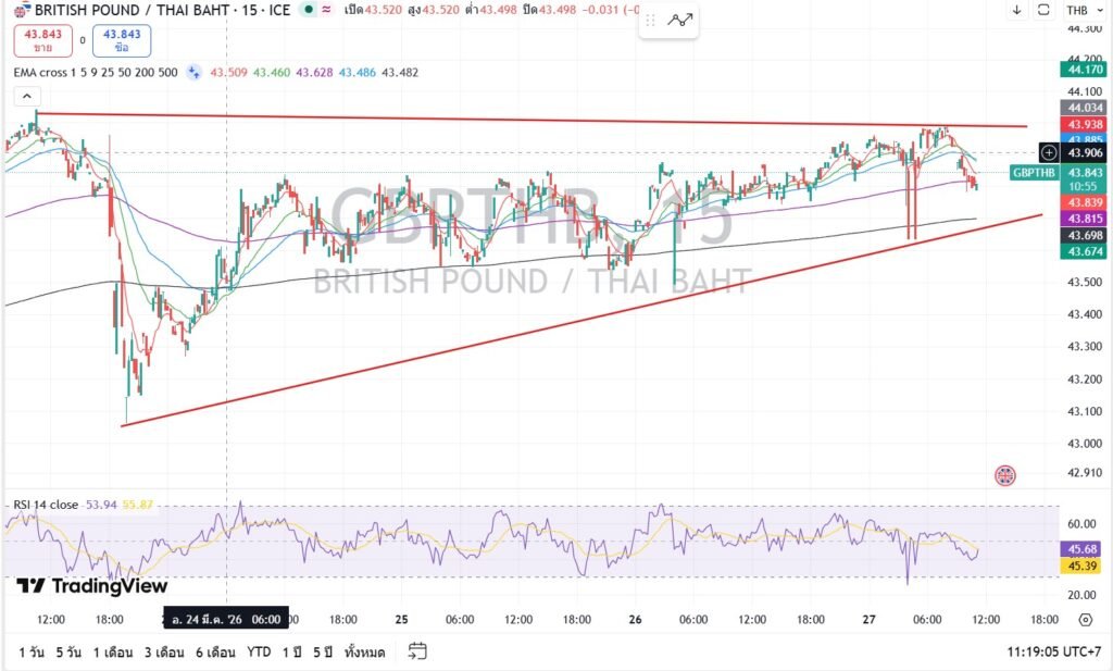 ค่าเงินปอนด์ฟื้นตัวได้ค่อนข้างแข็งแกร่งเมื่อเทียบกับสกุลเงินอื่น โดยเมื่อเช้ามีการขึ้นไปทดสอบระดับ 44.00 ก่อนจะย่อตัวลงเล็กน้อย