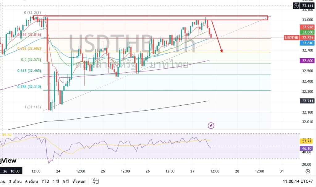 Resistance (แนวต้าน): 32.90 Support Level (แนวรับ): 32.60 – 32.65