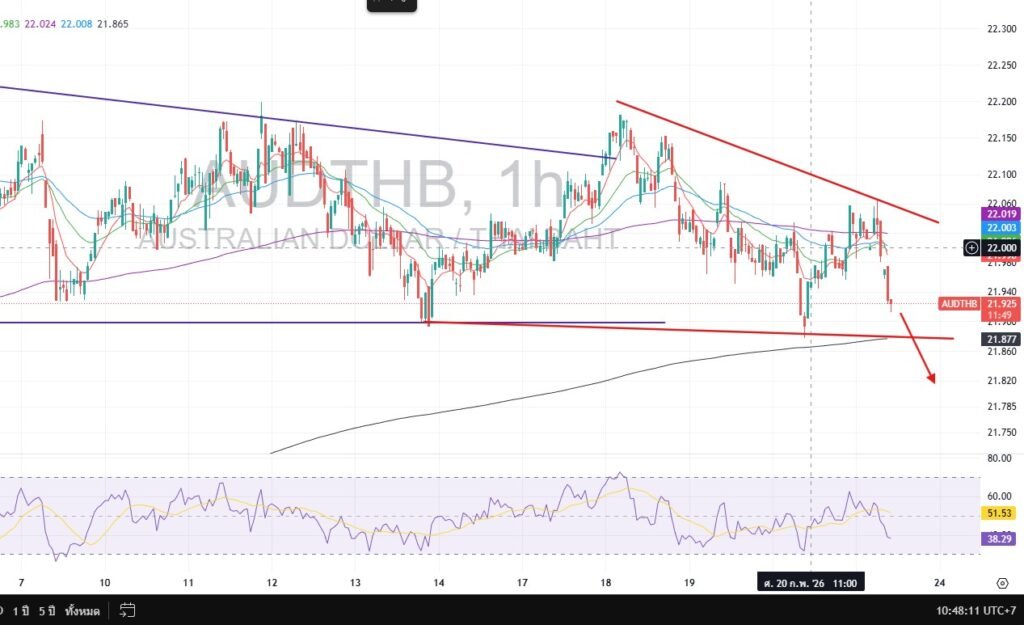Support Level (แนวรับ): 21.87 Target (เป้าหมาย): 21.95 – 21.97 Stop Loss (คัท): 21.86